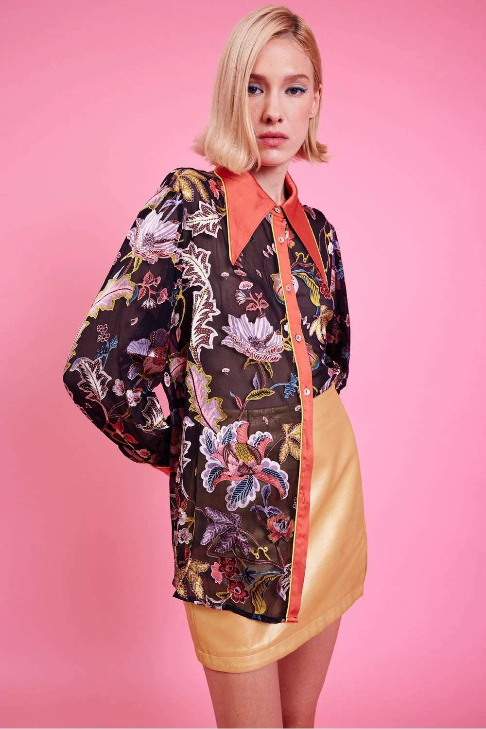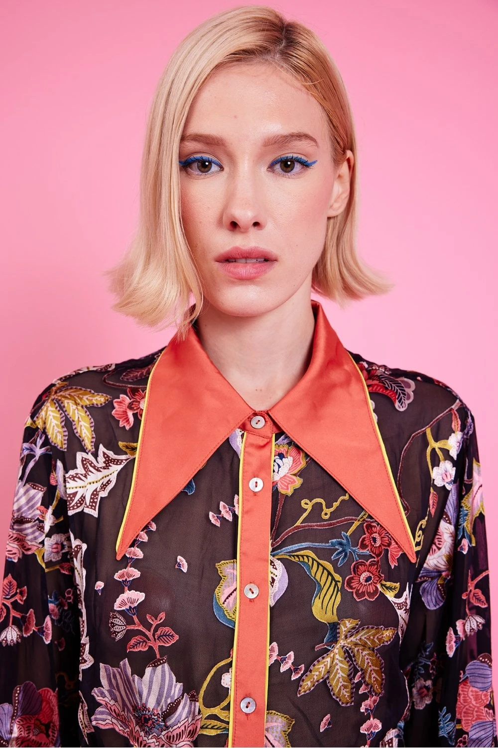 Keep cool in our sweet shirt featuring a gorgeous blue and green design, perfect for all year round. Classic collar and button up front and a dip hem.