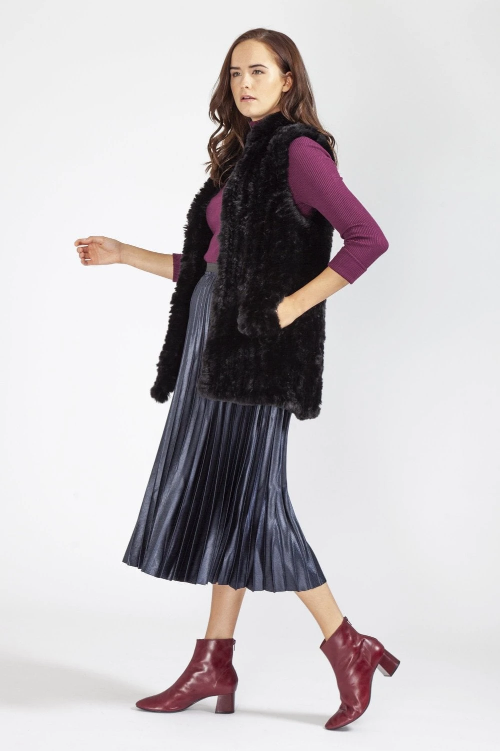 Sumptuously soft faux fur knitted gilet which will keep you warm and stylish this winter, making a versatile addition to any winter wardrobe. Our sleeveless gilet makes it effortless to layer your clothes without adding bulk allowing you to wear anything underneath to stay toasty warm and comfortable even when the weather is at its least welcoming.