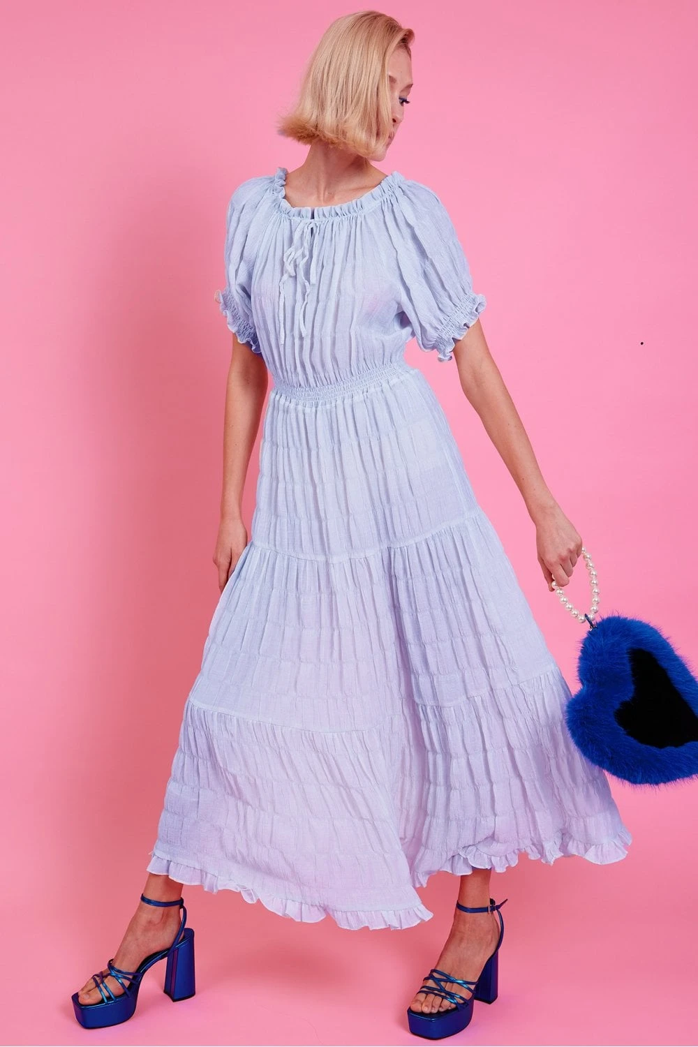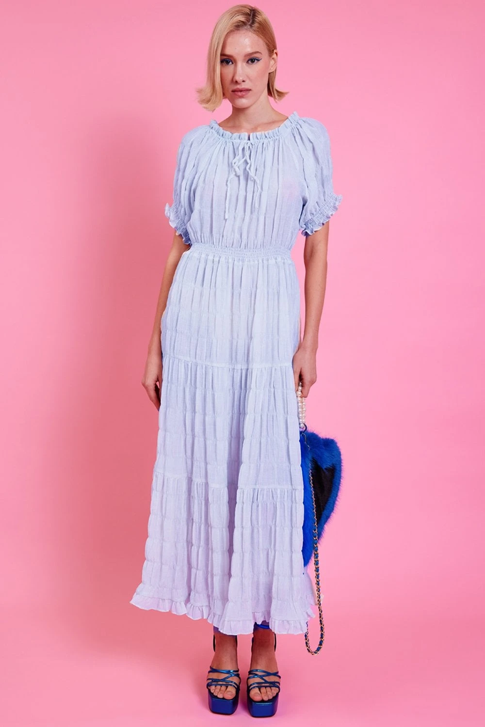 JAYLEY Blue Silk Blend Maxi Ruffle Dress
