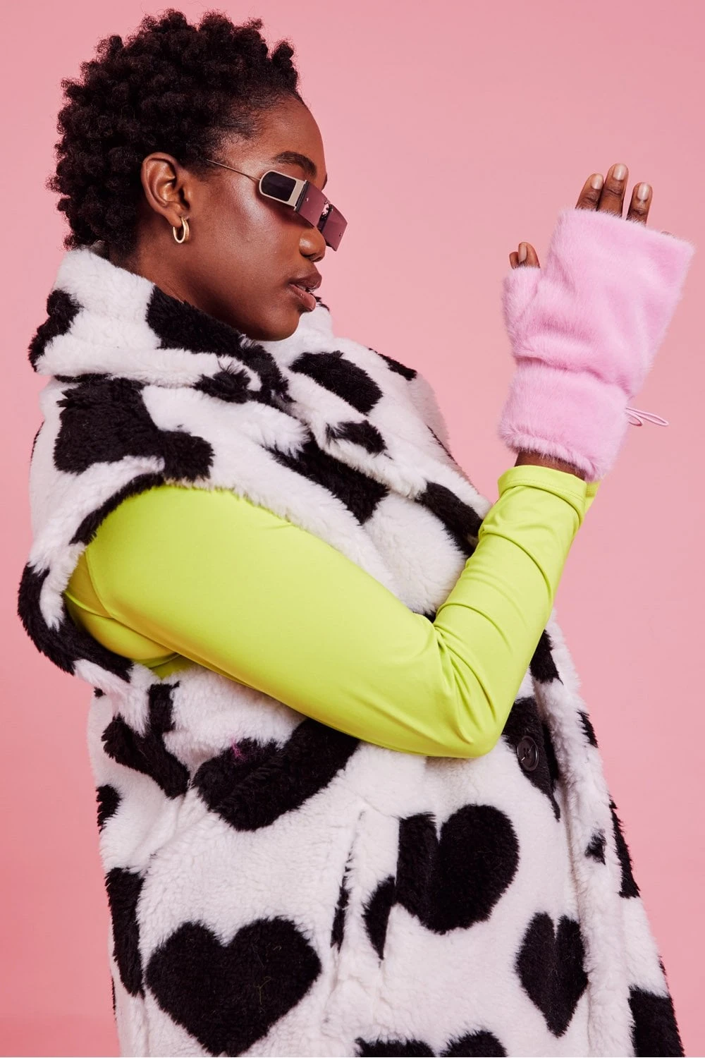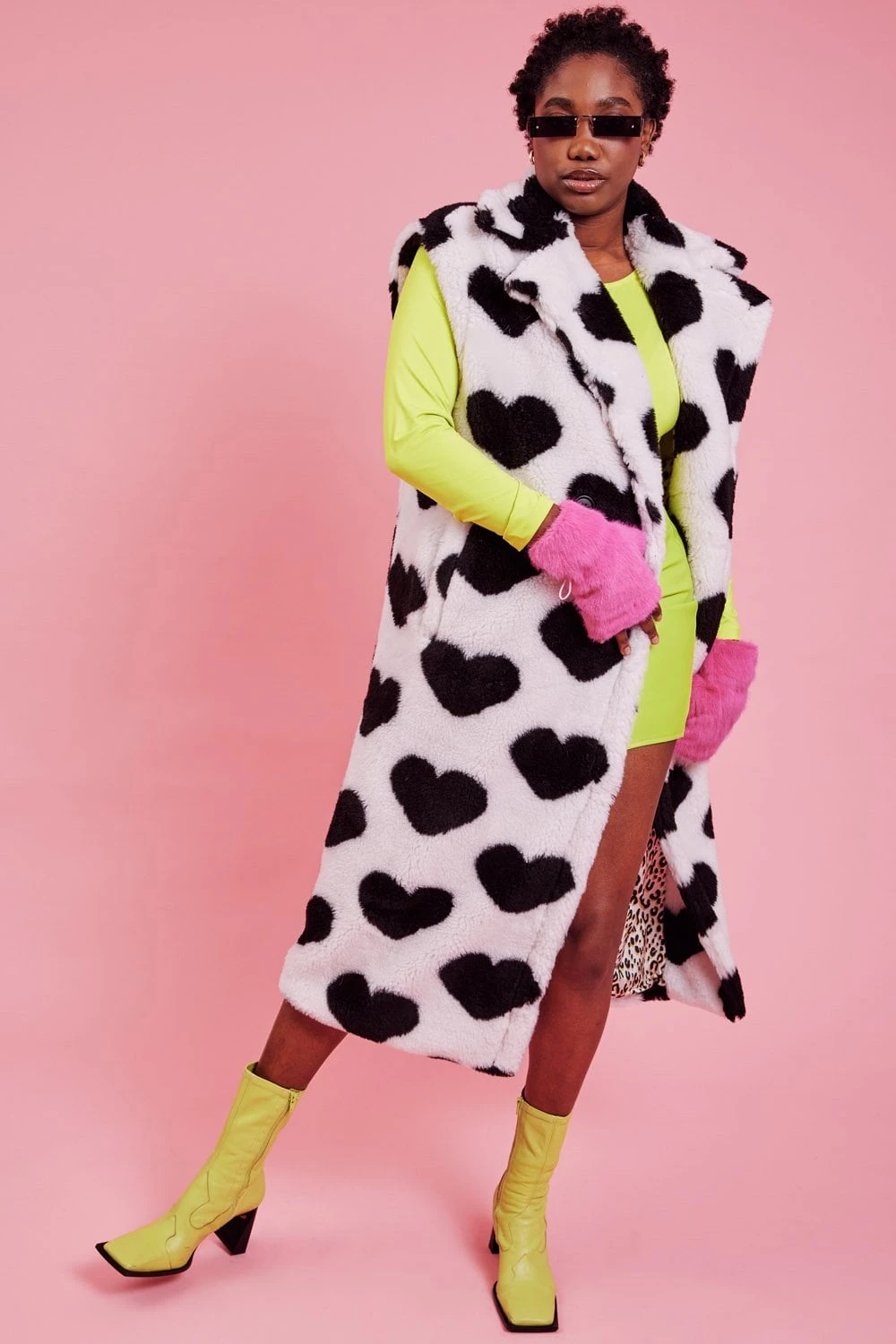 JAYLEY Faux Shearling Long Love Heart Gilet