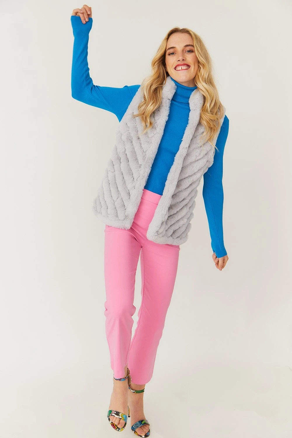 This gorgeous diagonal striped gilet is a go-to piece for country days and can be layered over any look. The sensationally soft faux fur adds texture to your favourite outfit whilst ensures you stay cosy throughout the colder months. It can be styled over knitwear, wet look jeans and a cute heeled boot for a casual evening look.