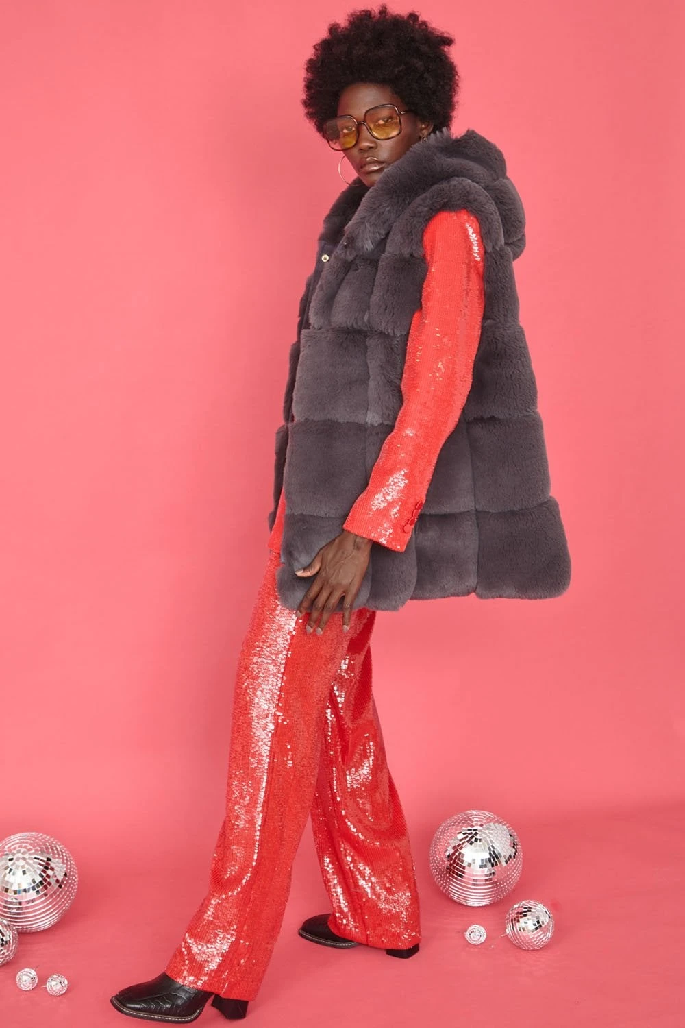 The ideal layering piece, this long faux fur gilet with hood, pockets and snap fasteners is a versatile piece, which has a silhouette-lengthening effect for a chic appeal. Made from the finish of faux fur materials this gilet will quickly become a wardrobe favourite; and with a wide variety of colours, there’s one for every outfit.