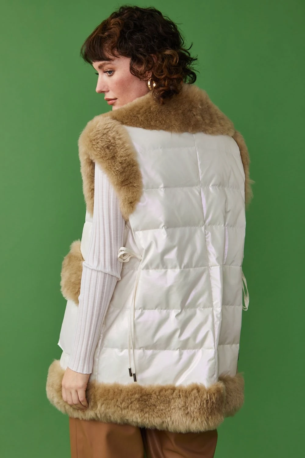 This oversized shearling gilet is guaranteed to keep you warm and cosy whilst you look super cool. The padded Duck Down body provides much needed warmth and the contrasting brown shearling collar and trim adds plenty of interest. The deep pockets and press stud closure makes it practical too.