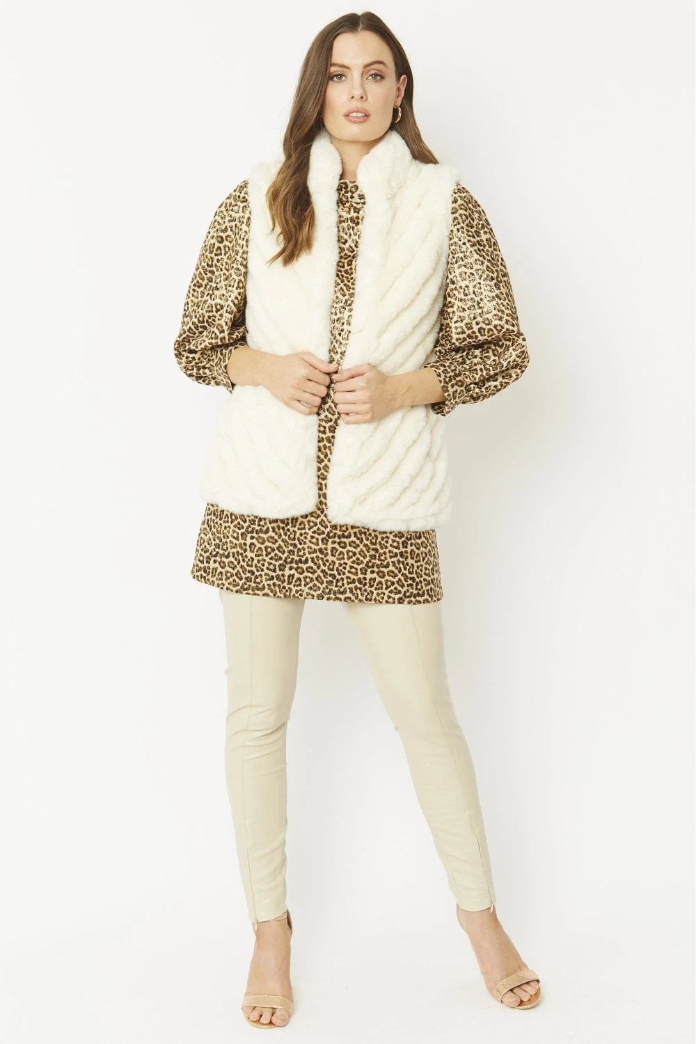 JAYLEY White Faux Fur Faux Suede Diagonal Stripe Gilet