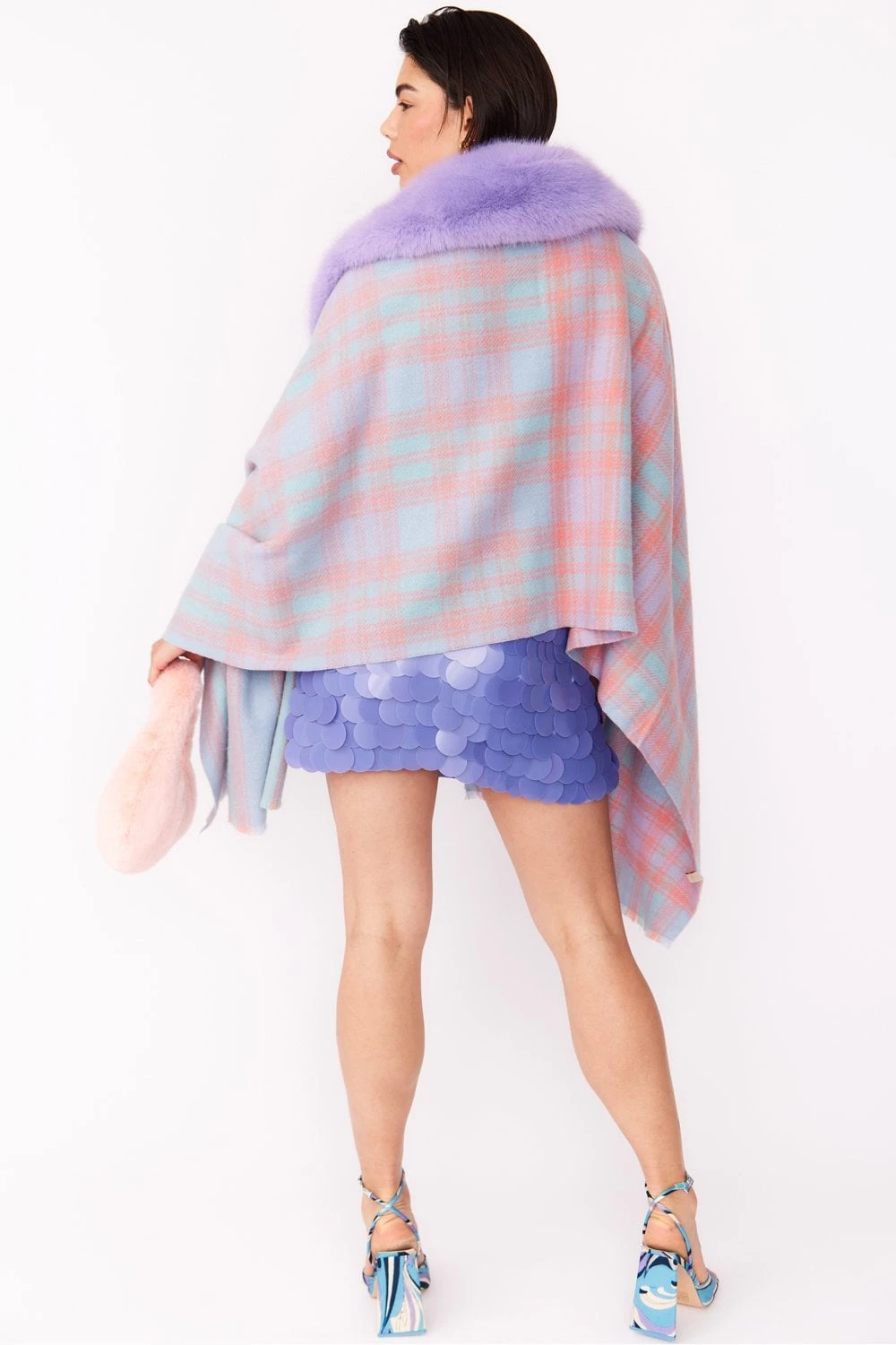 A colourful cover-up that will add so much to your look. Wrap our wool wrap with faux fur collar snuggly round your shoulders on a cool Summer evening.